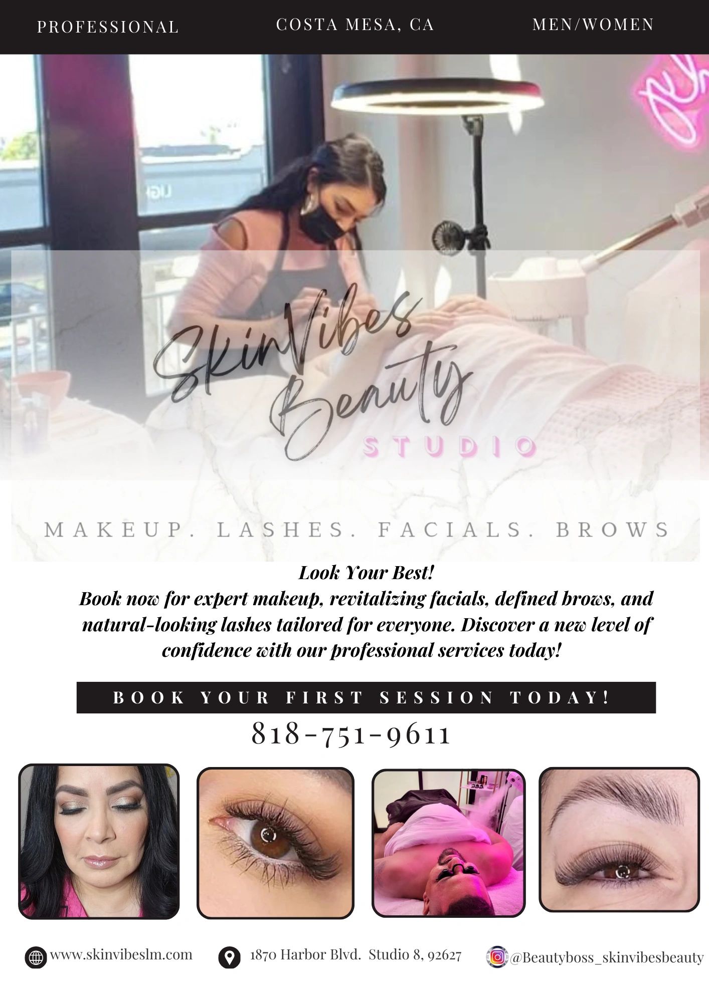Welcome to SkinVibes Beauty Studio nestled in the heart of Orange County, where luxury meets artistry. Experience the best of beauty with our exceptional services, including lavish eyelash extensions, flawless makeup artistry, hair styling, meticulous brow services, and personalized facials tailored to your unique radiance.
